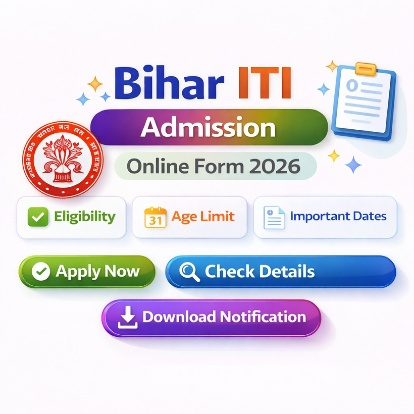Post Description – BCECE Bihar Combined Entrance Competitive Examination Board (BCECEB) is inviting online applications for Bihar ITI 2026 . Interested people meet all the eligibility criteria, apply online Details Of Recruitment Of Bihar ITICAT Admission Online Form 2026Course Name – ITICAT Number Of Seats – 33,108 Posts Education Qualification – 10th Passed From Any Recognized Board. How to Apply Online Bihar ITICAT Online Form 2026 – Candidates can apply through link provided below or they can also apply through official site of the Bihar Combined Entrance Competitive Examination Board before 14/April/2026. Required Documents For Online Application – Educational Mark sheet And Certificates Aadhar Card / Pan Card Passport Size Photo Signature Selection Mode – OMR Based Exam Merit List