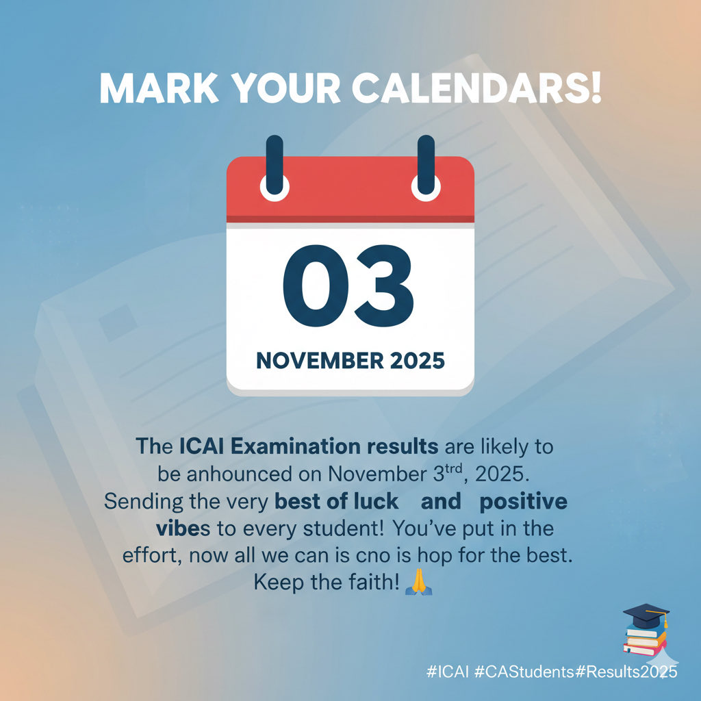 IMPORTANT DATESExam Date (Foundation) – 16, 18, 20, 22, September 2025 Exam Date (Intermediate) – Group I – 4,7,9 September 2025 Group II – 11,13,15 September 2025 Exam Date (Final Exam) – Group I – 03,06,08 September 2025 Group II – 10,12,14 September 2025 Admit Card – 28-April-2025 Result Date – 03-11-2025 | VACANCY DETAILSExam Name – ICAI CA September 2025 Exam Session- September 2025 | ||||