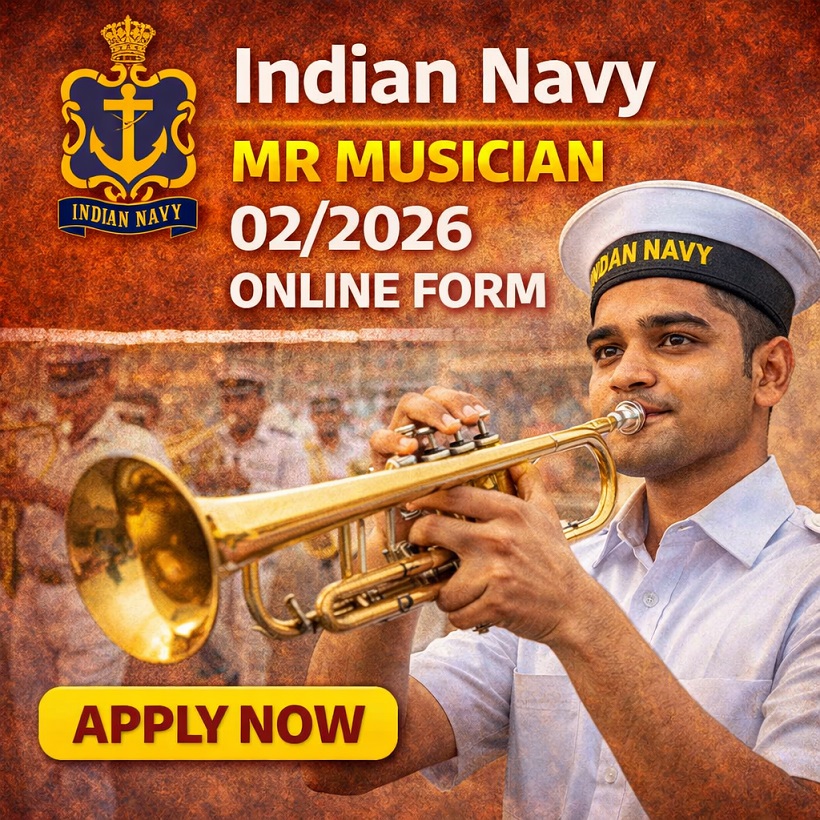 Indian Navy MR Musician 02/2026 Online FormPost Name – MR (MUSICIAN) (Male & Female)(Join Indian Navy) | |||||